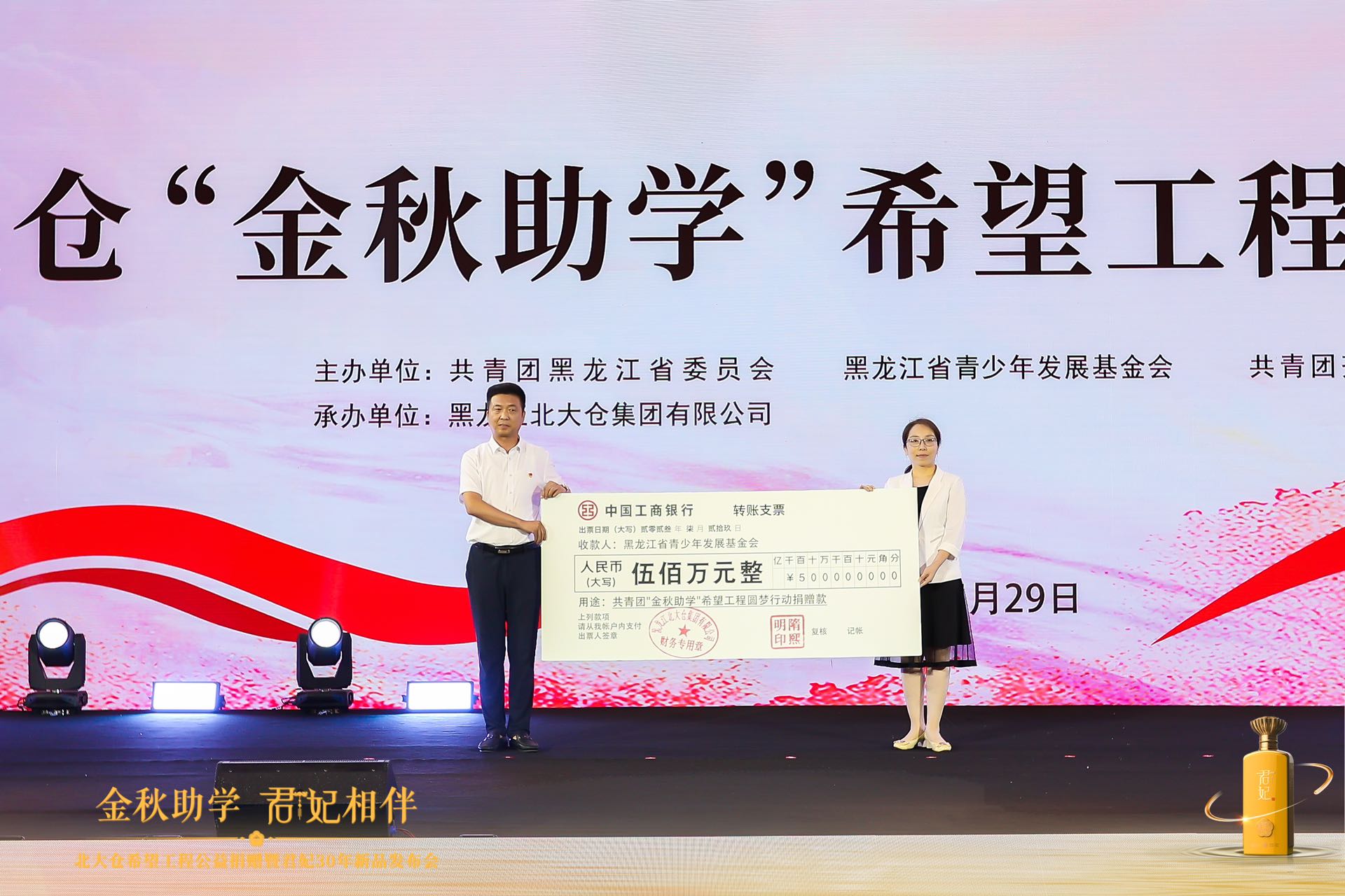 7月29日,由共青團黑龍江省委員會、黑龍江省青少年發展基金會、共青團齊齊哈爾市委員會主辦,黑龍江北大倉集團有限公司承辦的主題為《金秋助學 君妃相伴》北大倉希望工程公益捐贈暨君妃30年新品發佈會在冰城哈爾濱隆重舉行。本次發佈會邀請到行業專家、營銷專家、商界精英、媒體等各界人士,共同見證2023北大倉助學公益捐贈及承載慈善大愛的北大倉品質經典君妃30年的隆重問世。