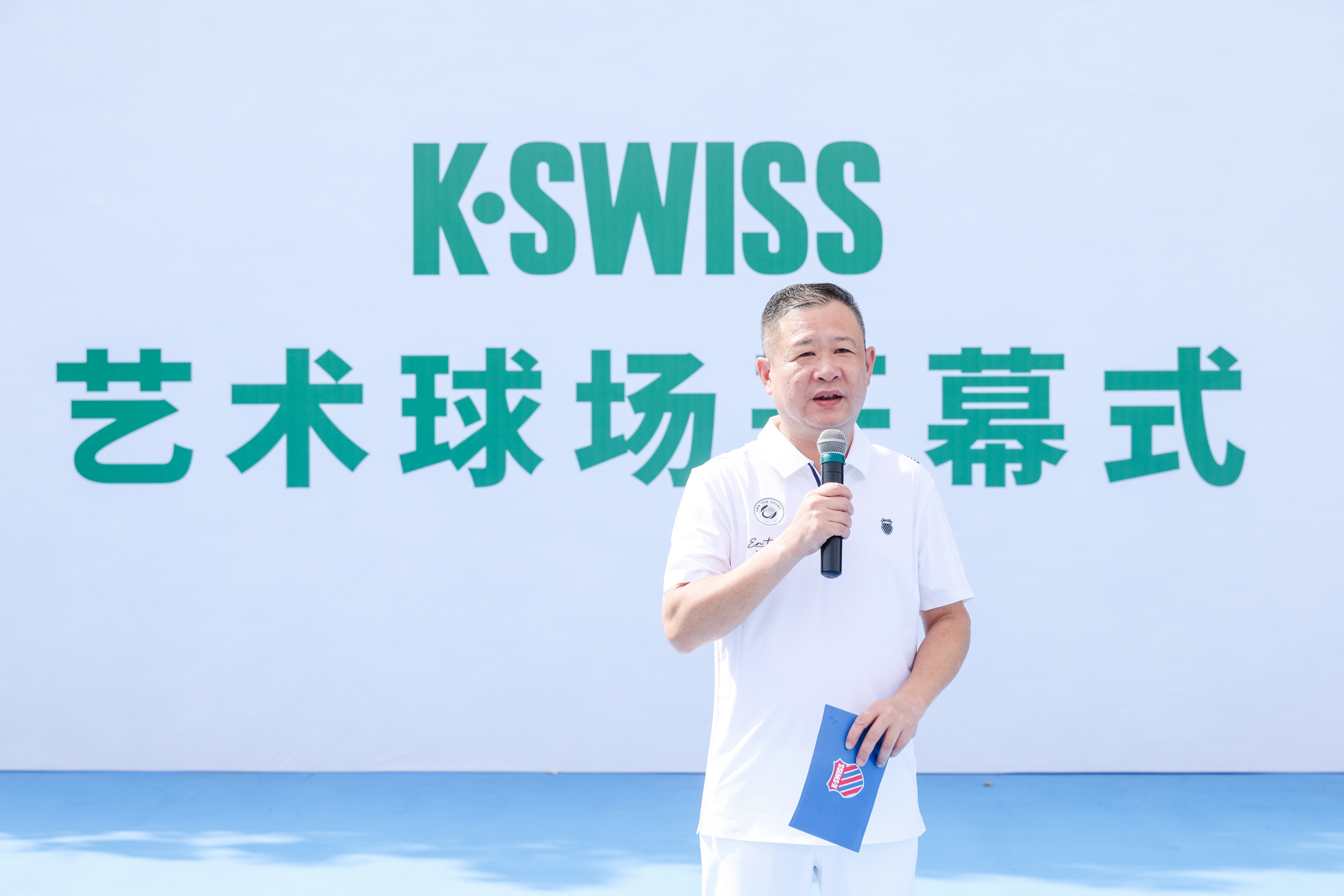 「K·SWISS日」是2023珠海網球冠軍賽的重要組成部分,也是大賽組委會為感謝K·SWISS對賽事提供的全方位支持而特別設立的。當天在K·SWISS藝術網球場揭幕儀式上,特步集團董事局主席兼CEO丁水波,華發股份實業有限公司首席配套官、華發商業經營管理有限公司董事長李向東、華發體育運營管理有限公司執行董事兼總經理呂品德、珠海網球冠軍賽賽事總監孫雷生、K·SWISS中國區總裁李琦、K·SWISS品牌代言人托馬斯·馬丁·埃切維里共同為K·SWISS大中華區首個藝術網球場揭幕、開球。
