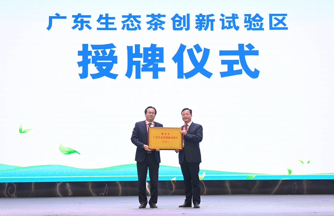活動當天,紫金縣被授予廣東生態茶創新試驗區稱號,紫金縣被認定為廣東生態茶園區域品牌縣。近年來,紫金縣委縣政府踐行「綠水青山就是金山銀山」發展理念,緊扣創建茶葉全域有機示範縣目標,堅持生態優先,品質為本。紫金縣生態秀麗,空氣清新,被譽為「北回歸線上的綠寶石」。好山好水育「蟬茶」。紫金蟬茶,是指特定品種在特定環境下,被一種昆蟲——「小綠葉蟬」叮咬過,並由茶農手工採摘一芽二葉後,經特殊工藝精心製成的茶葉,其茶湯蜜香濃郁、喉韻回甘,並含有一股天然的蜜香,被譽為「茶中燕窩」。