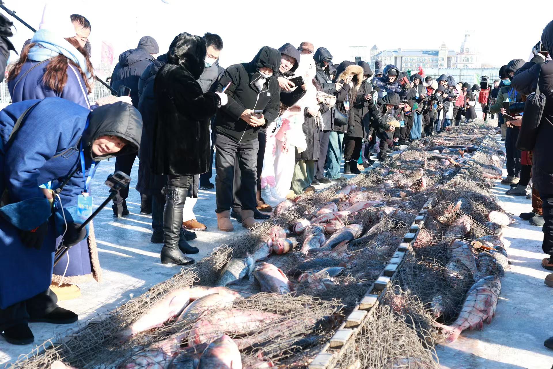 省級主會場活動現場,組織了「祭湖·醒網」、冬捕現場,頭魚拍賣、電商直播等活動,並融合蒙古族特色冰雪漁獵那達慕、馬隊展示、冬泳冬釣、冰雪樂園、美食品鑑、百福魚廊等內容,來自各大飯店的知名廚師,現場支起灶台進行全魚宴的美食製作,淘學企鵝空降連環湖,亮相冬捕現場,與廣大遊客一同勇闖冰天雪地,品龍江冷水魚。