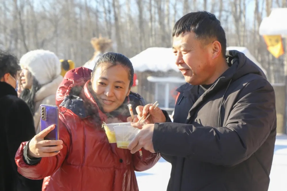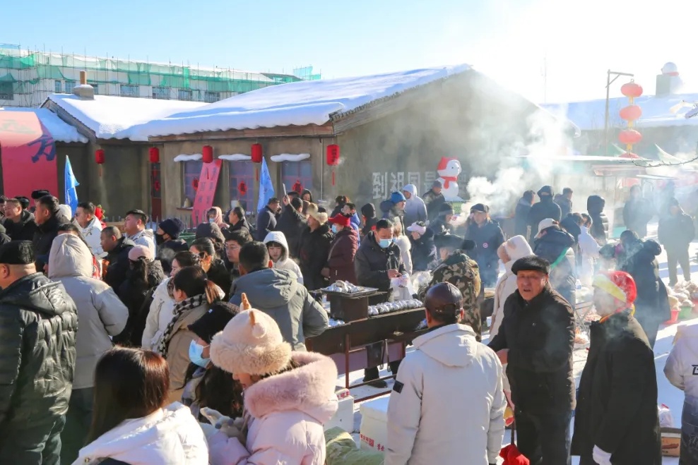 1月11日,黑龍江省寶清大型年豬宴活動在充滿懷舊氣息的知青小鎮舉辦。