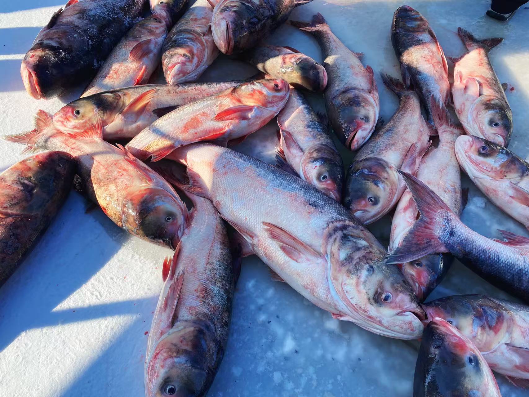 鮮活的魚兒躍上冰面,構成一幅生動的冬捕畫卷(張曉磊 攝)