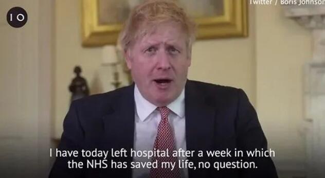 出院后的约翰逊迅速在Twitter发布一段5分钟的视频“报平安”。身穿西装、略显疲惫的他对英国NHS(国家医疗体系)极尽赞美,感谢工作人员“救了他的命”。同时他提到一连串医护人员的名字,特别感谢来自“新西兰的詹妮”和“葡萄牙的路易”对他全天候的精心陪护。
