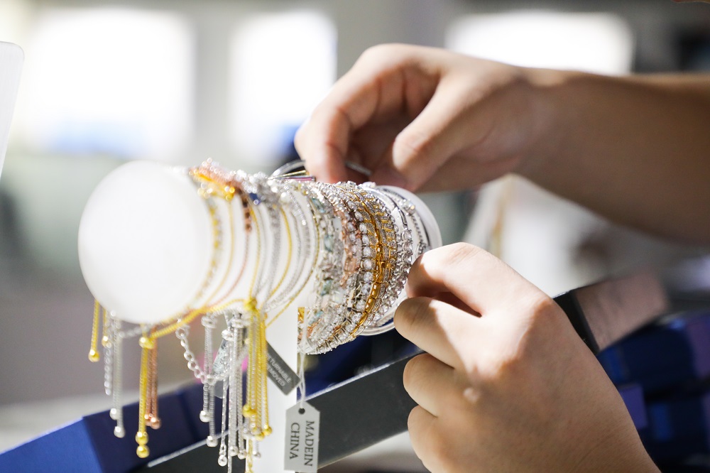 時下企業外銷受阻,內銷不暢,走訪企業及了解銷售情況稱為一伴飾品生態園負責人冷邑軍每天上班工作安排的主要內容。冷邑軍介紹,出口飾品絕大部分銷往南美、北美、歐洲的市場,這部分市場的總人口數量與中國相近,市場體量差不多。隨着國內電商、直播等推銷模式的快速發展,加上產品的質量優勢,打開國內市場稱為當下外貿企業自救的首選也是唯一出路。