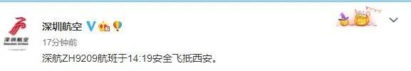 深航ZH9209航班更换编号为B-1036空客A330飞机继续执行任务,预计14:15抵达西安。