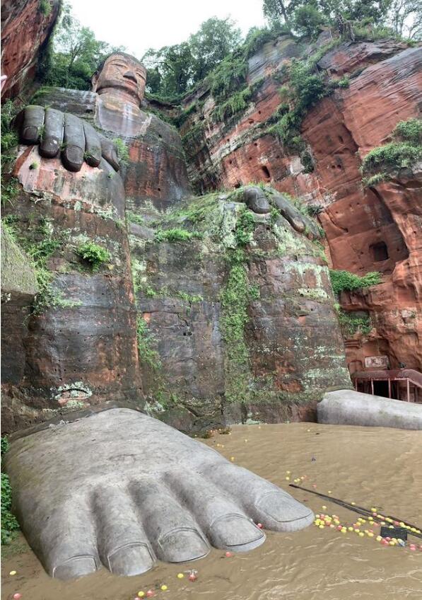 此前两次洪水过境,洪水均已漫上佛脚平台,但尚未淹到佛脚。目前乐山市已启动I级防汛应急响应。