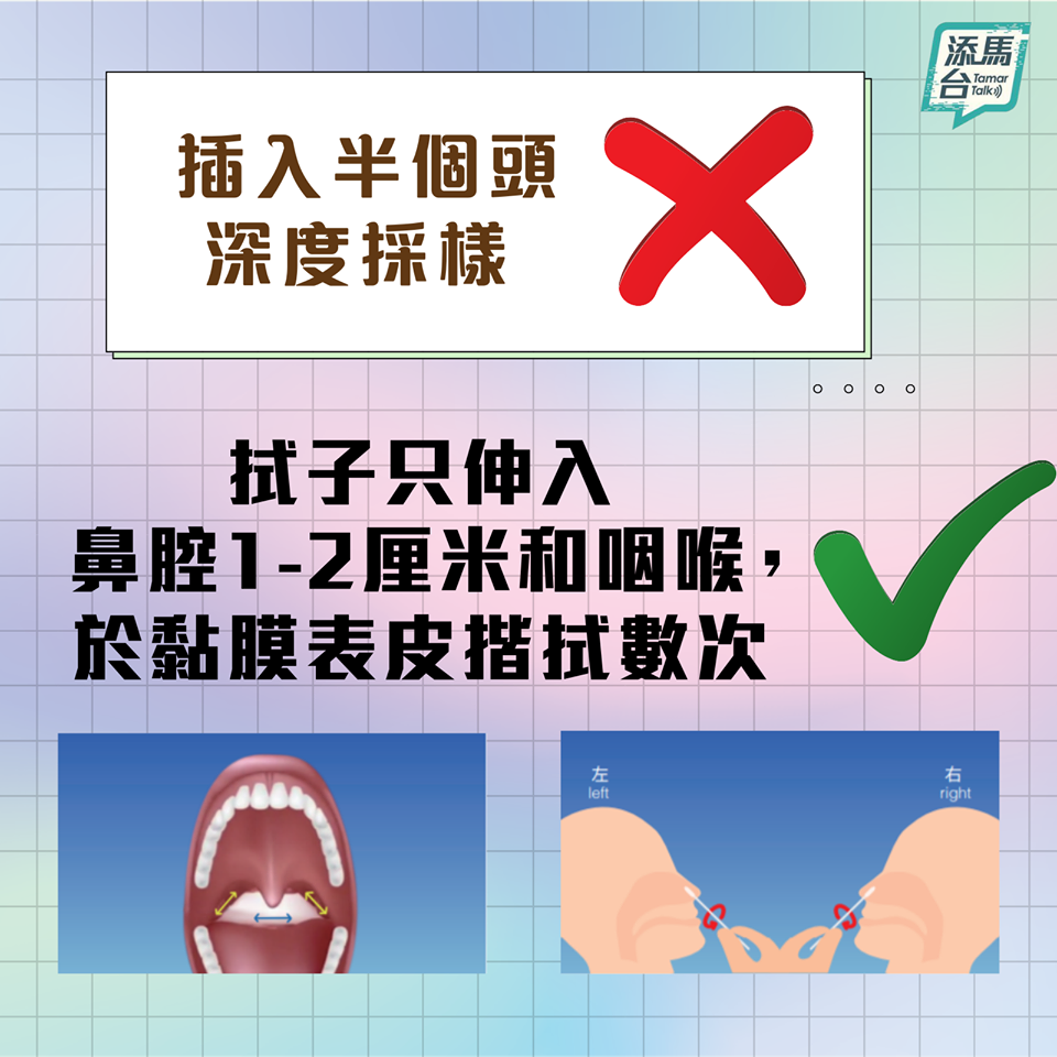 帖文表示,這些信息錯誤描述採集樣本的方法,如拭子「插入半個頭深度採樣」,實情是拭子只伸入鼻腔1至2厘米和咽喉,於黏膜表皮揩拭數次。