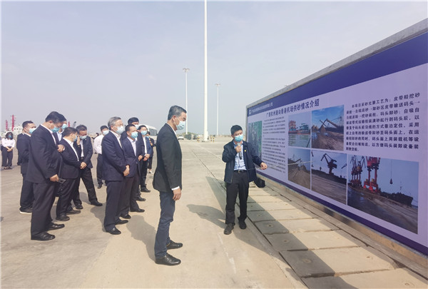梁振英在廣西欽州考察國際集裝箱碼頭海砂供港項目