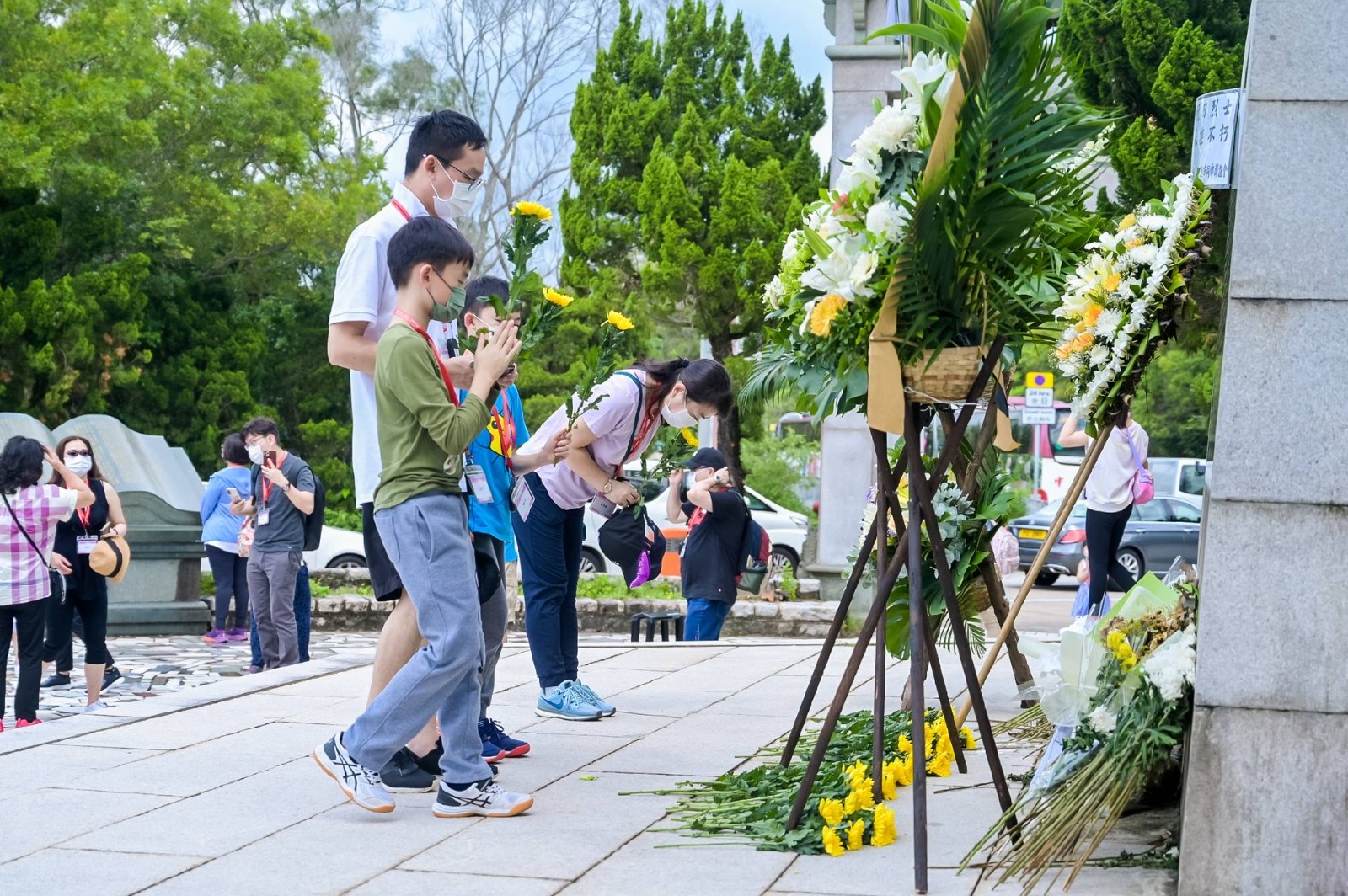 今早,來自港區省級政協委員聯誼會及香港政協青年聯會的一行近60人,到訪西貢斬竹灣紀念碑園進行參拜活動,由聯誼會秘書長英煒、副秘書長劉娟、會員事務委員會主任沈墨寧、體育委員會主任霍啟山代表,向紀念碑獻上菊花,隨後在場人士全體靜默鞠躬及輪流獻花,一同緬懷並向抗日英烈致以最崇高的敬意。
