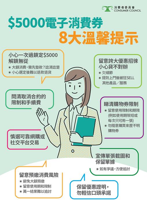 消委會表示,消費券是分階段發放款項,因此期望政府、儲值支付工具平台或其他社福機構如長者中心在每一階段提醒消費者相關安排;消委會亦會注意消費券計劃推出後各商戶的營銷手法,並呼籲各業界自律齊心、讓本港經濟穩步復蘇。