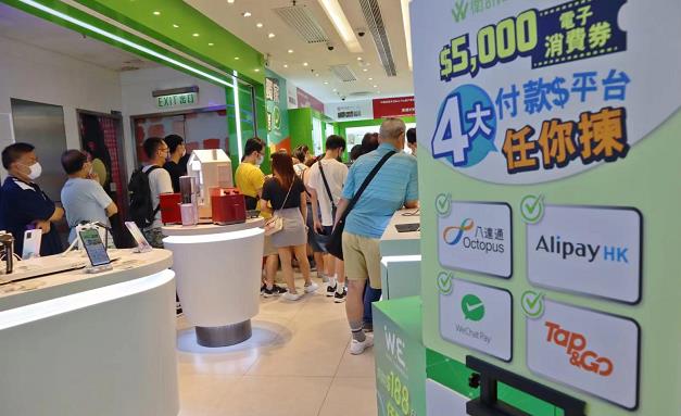 其中有市民姚小姐聯同妹妹今日到周大福選購2隻價值10多萬元的名表,並使用支付寶付款。她表示,知道店舖可用支付寶付款,特意等到派錢後才過黎購物,而下一期的消費券則打算再過來買鑽石首飾。