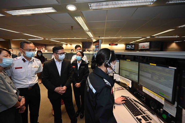 鄧炳強同時參觀負責調派滅火和救護資源的消防通訊中心,並觀看中心人員示範使用調派後指引系統。