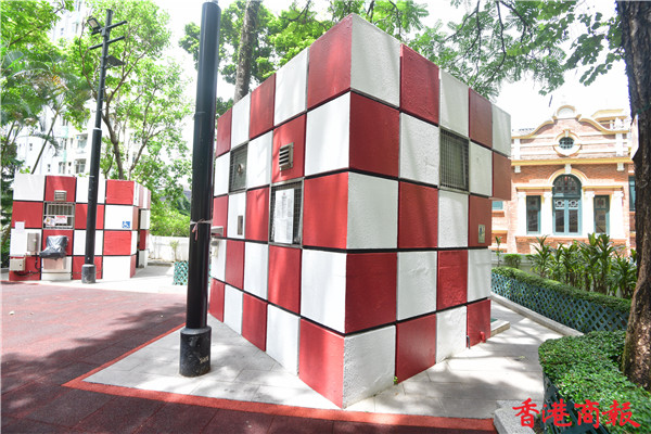 近來本港的公園連番革新及變得更新奇好玩,擺脫過去沉悶格局。最近較為吸引的公園,正位於上環半山堅道的堅巷公園,走紅白格仔路線。其中引人入勝之處,是扭計骰造型的公廁,全個正方體紅白色格仔設計,完全令人看不出是公廁,玩味十足,猶如進入童話夢想地帶。