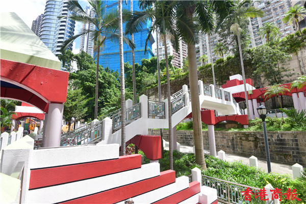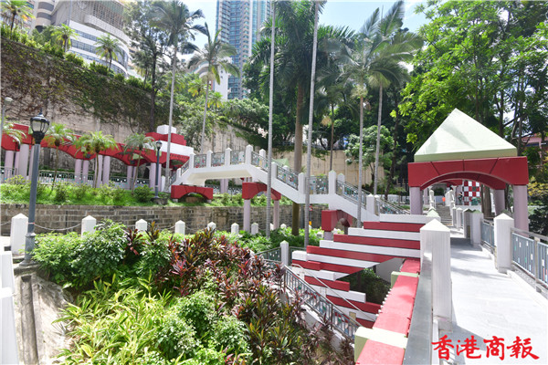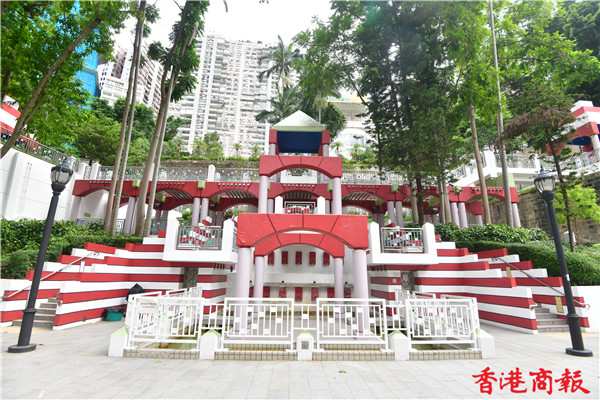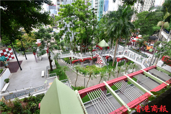這個如積木樂園的堅巷公園,早於1990年已建成,至今已經歷三十年,但玩味更濃,在這個繁華的上環半山另闢一個童話樂園般,可令人回復童真一樣。(崔俊良攝)