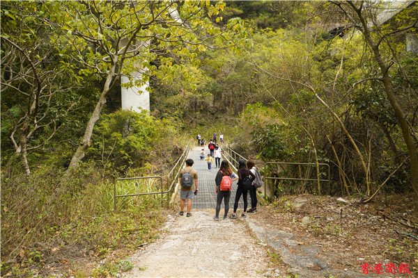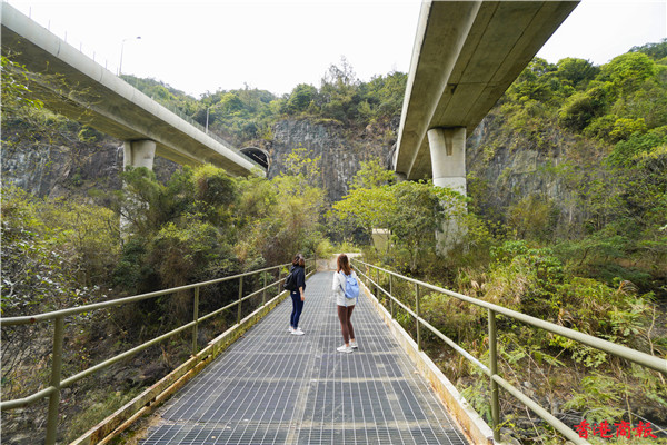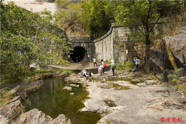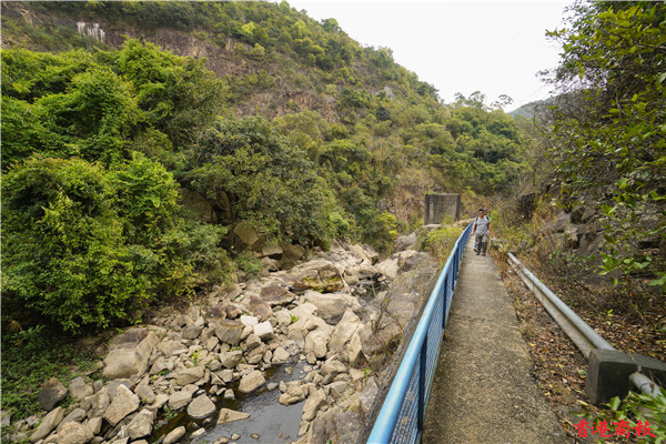 位於香港新界針山以南,處於城門水塘下游的一段俗稱「城門峽」的峽谷地帶,建於1961年的下城門水塘,容水量429萬9千立方米,是船灣淡水湖供水計劃一部分,亦是郊野公園範圍以外的少數水塘之一。常被誤稱為「菠蘿壩」的堤壩建築,實際上是上城門水塘的副壩。這段下城門水塘至城門水塘路段,全程多是石屎路,路程比環城門水塘一周還要短,算是較為易行的路徑。途中除了可以觀賞到數十層樓高的「菠蘿壩」外。也可從另一角度觀看到,跨越城門峽的兩條城門隧道行車天橋,是一條非常適合一家大細,扶老攜幼戶外郊遊的好地方。(馮俊文攝)