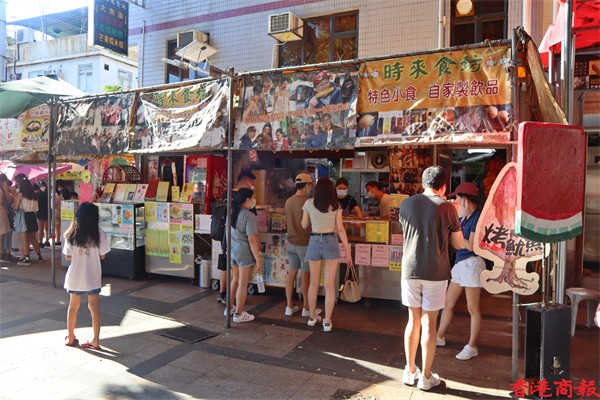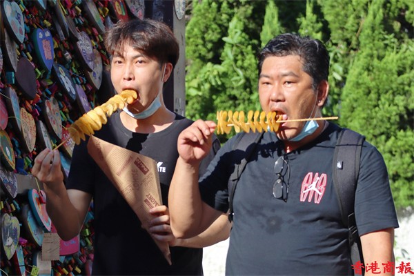 島上大大小小的食店就有過百間,有即買即煮的海鮮酒樓;有文青喜愛的咖啡小館;有地道的茶餐廳等,而最吸引遊客的,莫過於隨處可見的街頭小食店,出售的除了港式街頭小食如:雞蛋仔、豬皮、魚蛋外,還有不少特色小食,例如:外熱內凍的炸雪糕、比乒乓球還要大的魚蛋、乒乓球拍般大小的冰西瓜、長洲人首創的芒果糯米糍、故鄉茶寮紅豆餅、香噴噴的烤魷魚、龍捲風薯片、冰糖水果串等,都是遠近馳名的長洲美食。買了之後可以隨意找個地方吃,也可邊吃邊走,繼續尋找其他美食。如果說香港是「美食天堂」,那麼長洲就是「美食小島」了。(馮瀚文攝)