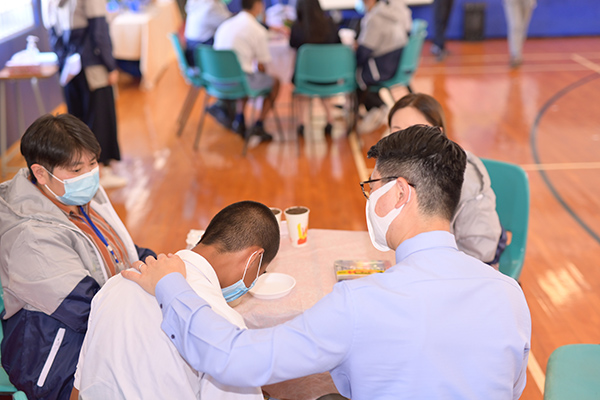 校長關懷青少年在囚人士,左一穿風褸者為義工。