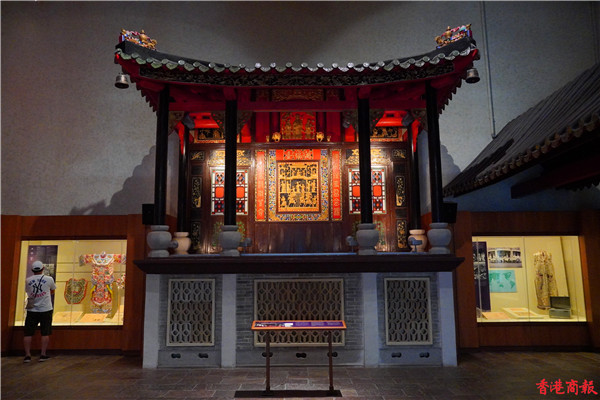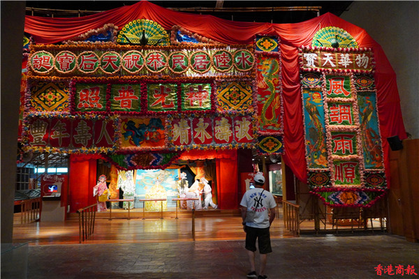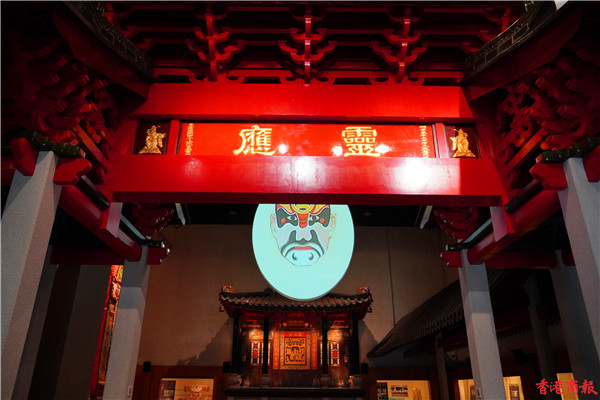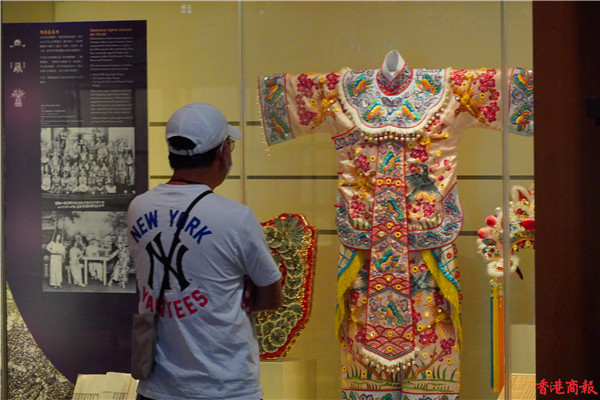 香港文化博物館新增設的長期展覽——粵劇文物館展廳,陳列了該館蒐藏的粵劇文物,包括昔日名伶的表演用品,並透過重構的戲棚和電腦影音媒體,生動又全面地展現粵劇藝術的歷史和特色。 紅伶閣展區展出的是戲服、戲橋、相片等精選藏品,讓市民重溫關於粵劇的精彩傳奇故事。(馮俊文攝)