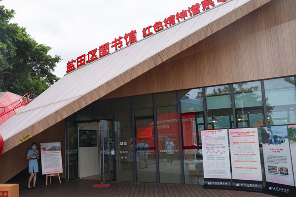 近年來,在鹽田區委宣傳部的指導下,鹽田區圖書館按照「一書房一主題一特色」的原則,在轄區公園、綠地、街道、社區等區域建設了10間智慧圖書館書房,其中,燈塔、邂逅等10間智慧圖書館早已成為市民遊客熱衷打卡的網紅點,觀海圖書館則以「講好黨史故事,傳承紅色基因」為設計理念,被打造成首個紅色精神譜系專題館。該館位於鹽田區鹽梅路小梅沙驛站,建築面積204.71平方米,可容納60人。館內配置有紅色精神譜系主題文獻、中國歷史、革命文學、黨史教育音像、紅色電子書等館藏資料8000餘冊,並專門針對青少年配置了簡單易讀、有趣有益的紅色連環畫,打造了一個豐富多元的紅色文獻資源陣地。