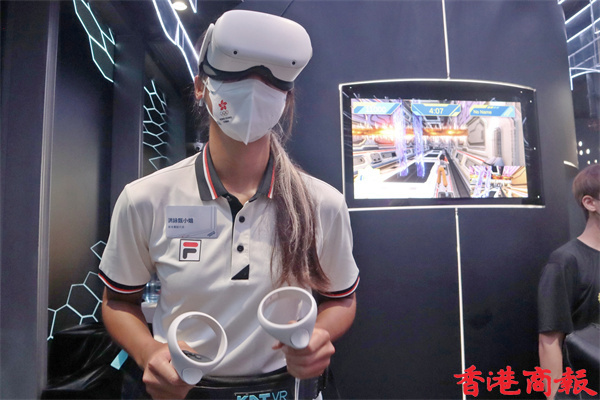 儀式後大會特意安排謝影雪/鄧俊文和洪詠甄即場與青少年組隊試玩互動遊戲及試玩 360" VR 體驗區。(馮瀚文攝)