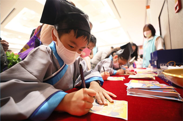 嗇色園黃大仙祠今日(12日)第3次舉行「萬世師表孔聖先師啟蒙開筆禮」,讓莘莘學子受黃大仙師庇佑,獲孔聖先師啟蒙、修身立德。