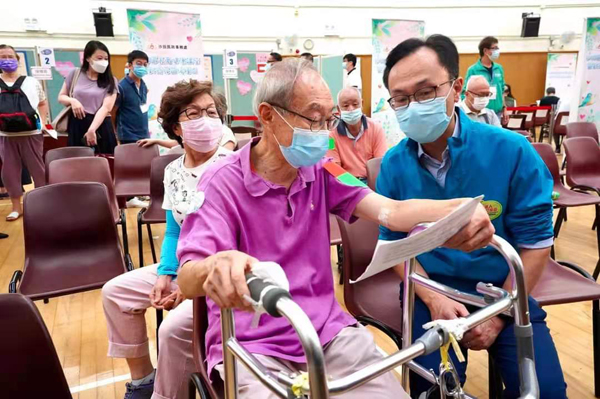 遇到一位社署的退休同事,她帶着兩老來諮詢醫生,並即場參與接種,「安排真是很方便!就在樓下可以安排見醫生,然後即時打針。我們全家都接種了,只剩父母未打,兄弟姊妹都同意兩老打針,但爸爸要坐輪椅,媽媽又有長期病患,即使到社區疫苗接種中心也不方便,好開心有今次這個安排!」