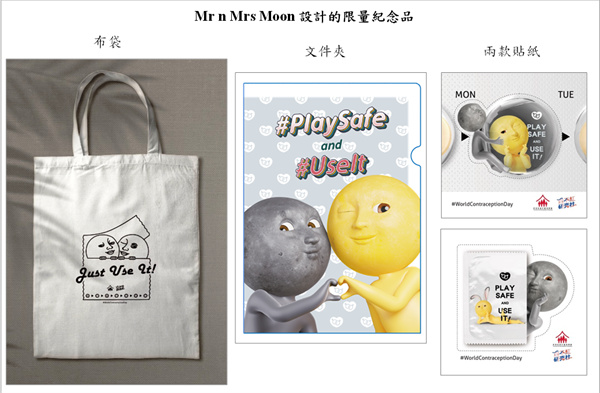 家計會表示參加者完成遊戲後將有機會獲贈由Mr n Mrs Moon設計限量紀念品,包括布袋、文件夾及兩款貼紙,上面印有「Play safe and use it!」趣味標語,提醒較安全性行為的重要。