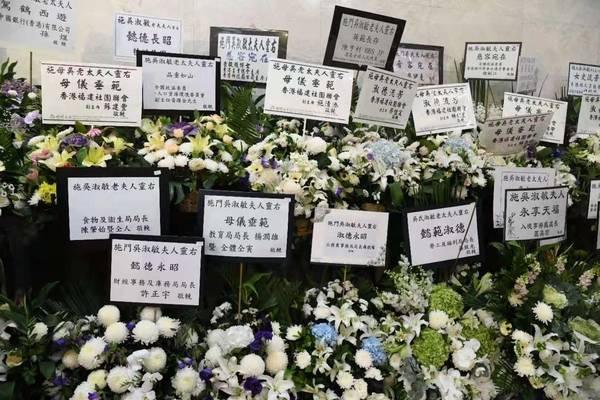 施子清妻子施吳淑敏今出殯 政商界人士送上花牌