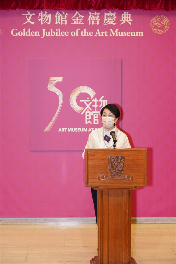 頂圖:中大校長段崇智及中大文物館館長姚進莊在文物館金禧慶典上致送紀念品予希慎興業有限公司主席利蘊蓮及運動燃希望基金創辦人利蘊珍,以感謝利孝和家族的捐贈和支持。