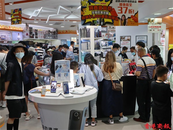 適逢「十一」國慶節,加上有不少商戶針對第二期消費券發放推出消費優惠,記者在各大商場看到,各處都是購物人潮湧動,金飾、電子產品、衣服、皮鞋等商品都有不少市民光顧。