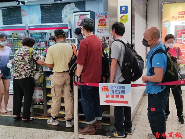 政府派發的第二期2000元電子消費券10月1日起發放,不少使用八達通的市民一早到地鐵站或便利店領取。
