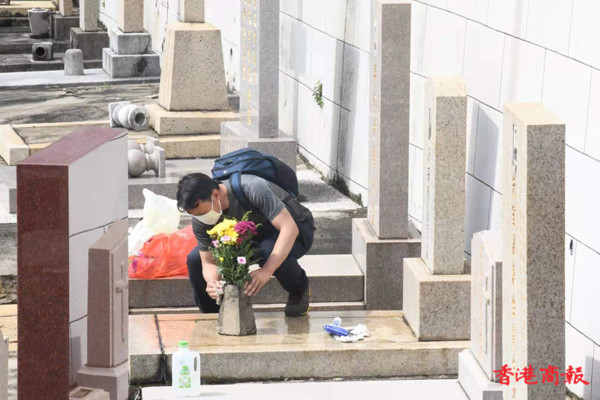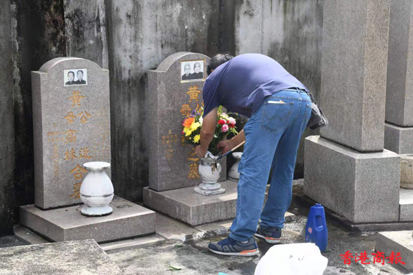 重陽節許多孝子賢孫帶備鮮花到先人墓前拜祭,盡顯以孝為先的中國傳統美德。(蔡啟文攝)