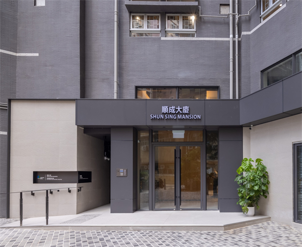順成大廈的牆身飾面,它使用防火效能和硬度較高物料來增加耐用性。
