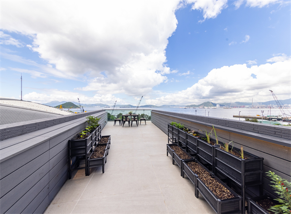 順成大廈4樓平台翻新後已改造成可眺望維港的平台空間、讓住戶使用。