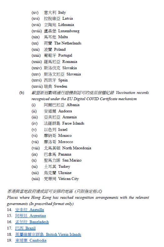 發言人說,政府會繼續與其他地區就疫苗接種紀錄認可安排進行商討。當政府與這些地區陸續達成認可安排後,將更新名單。