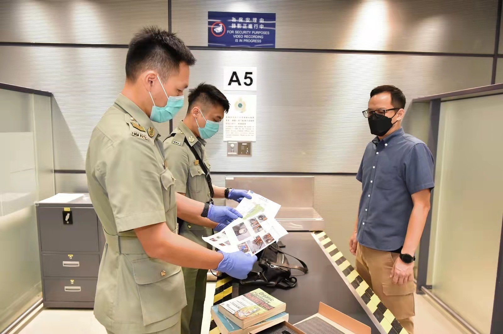 海關人員從一名旅客的行李內發現懷疑與恐怖活動有關的物品。