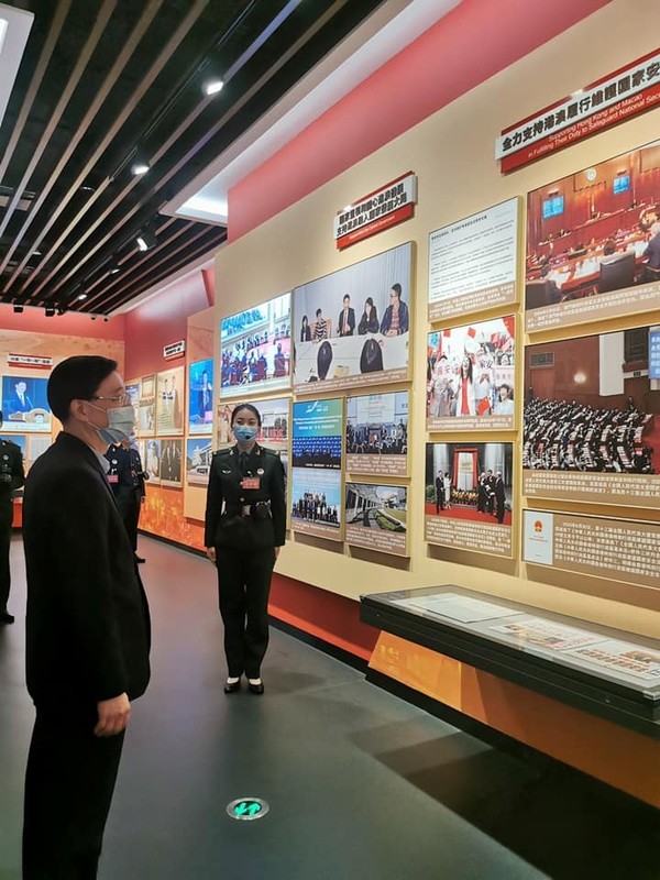 在中國共產黨成立100周年之際,昂船洲軍營駐香港部隊展覽中心建成開放。政務司司長李家超9日在社交網站表示,他當天到展覽中心參觀,展覽主題為「夢起東方」,設中國夢、強軍夢、香江衛士三個主題展廳和裝備模型展示區,他與同事一起,聽取人員的詳細介紹。