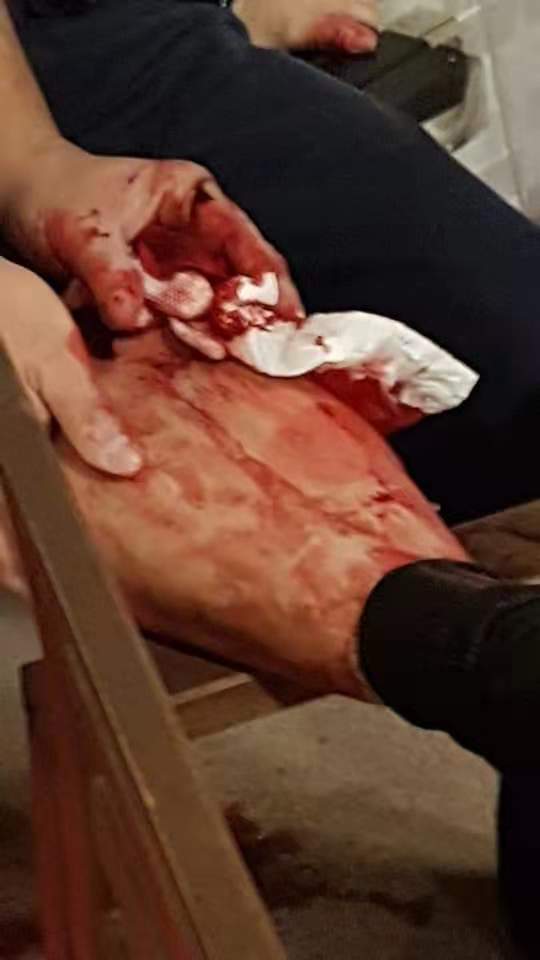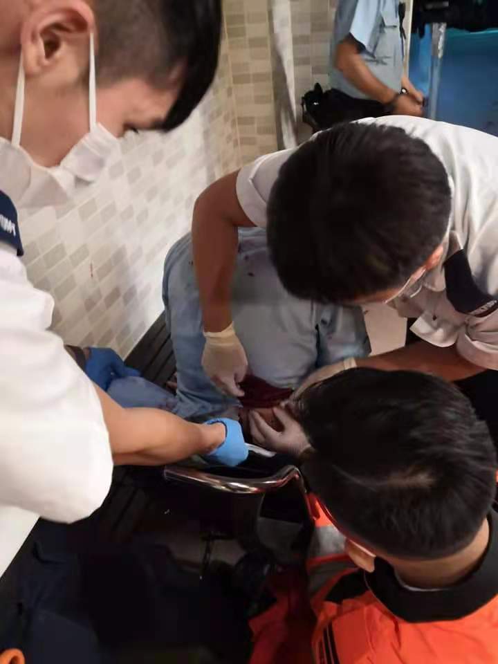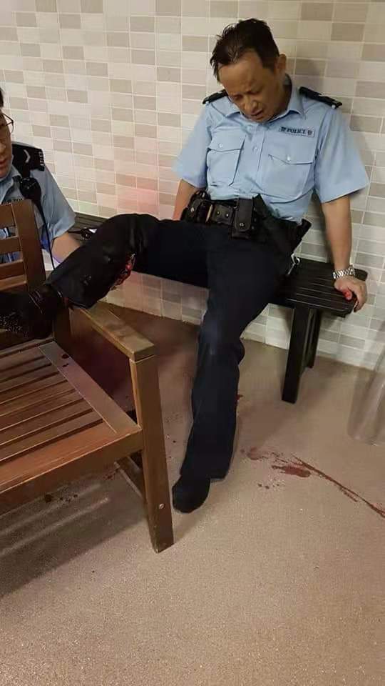 消息稱,受傷警員隸屬北角分區巡邏小隊,右小腿傷勢嚴重,傷口深可見骨,血流如注,背部亦有瘀傷,救護員到場將他送往院,經救治後今日仍需留醫。(記者 區天海)