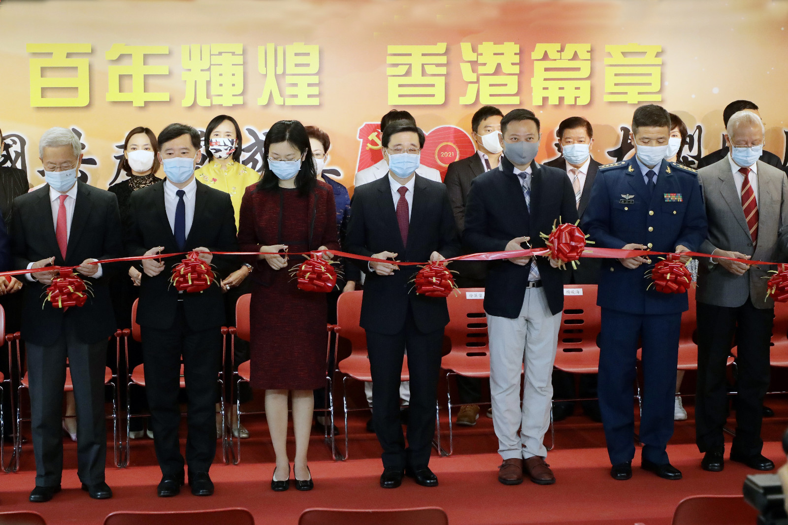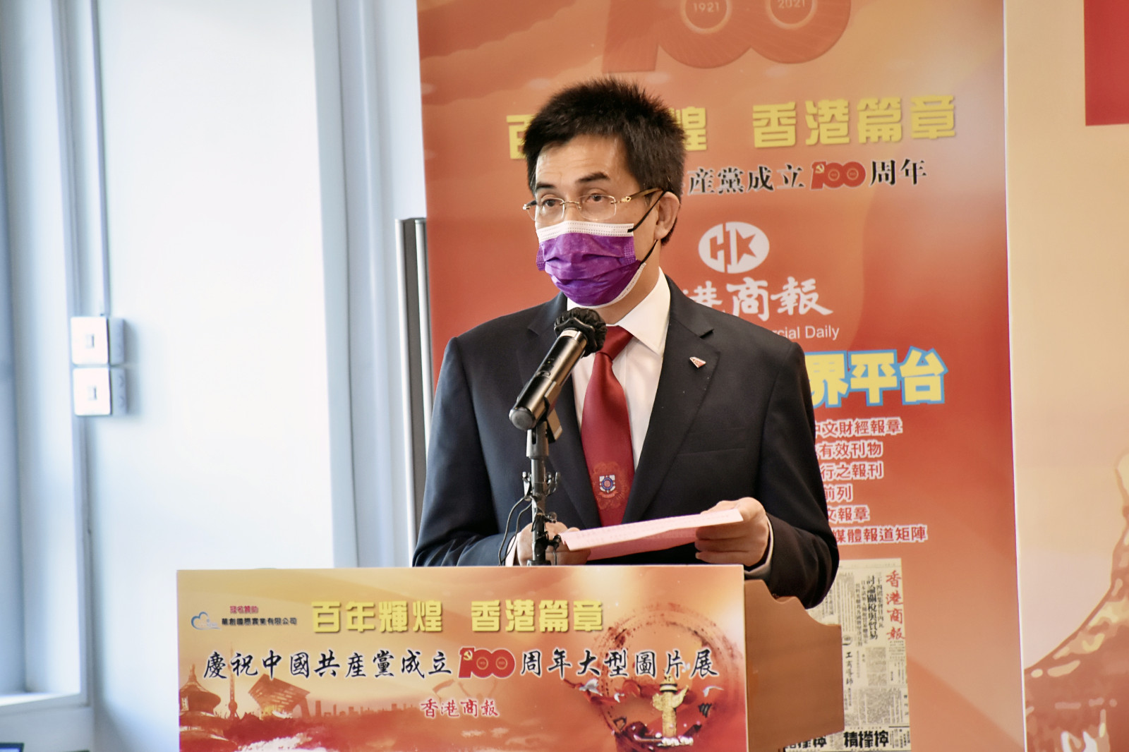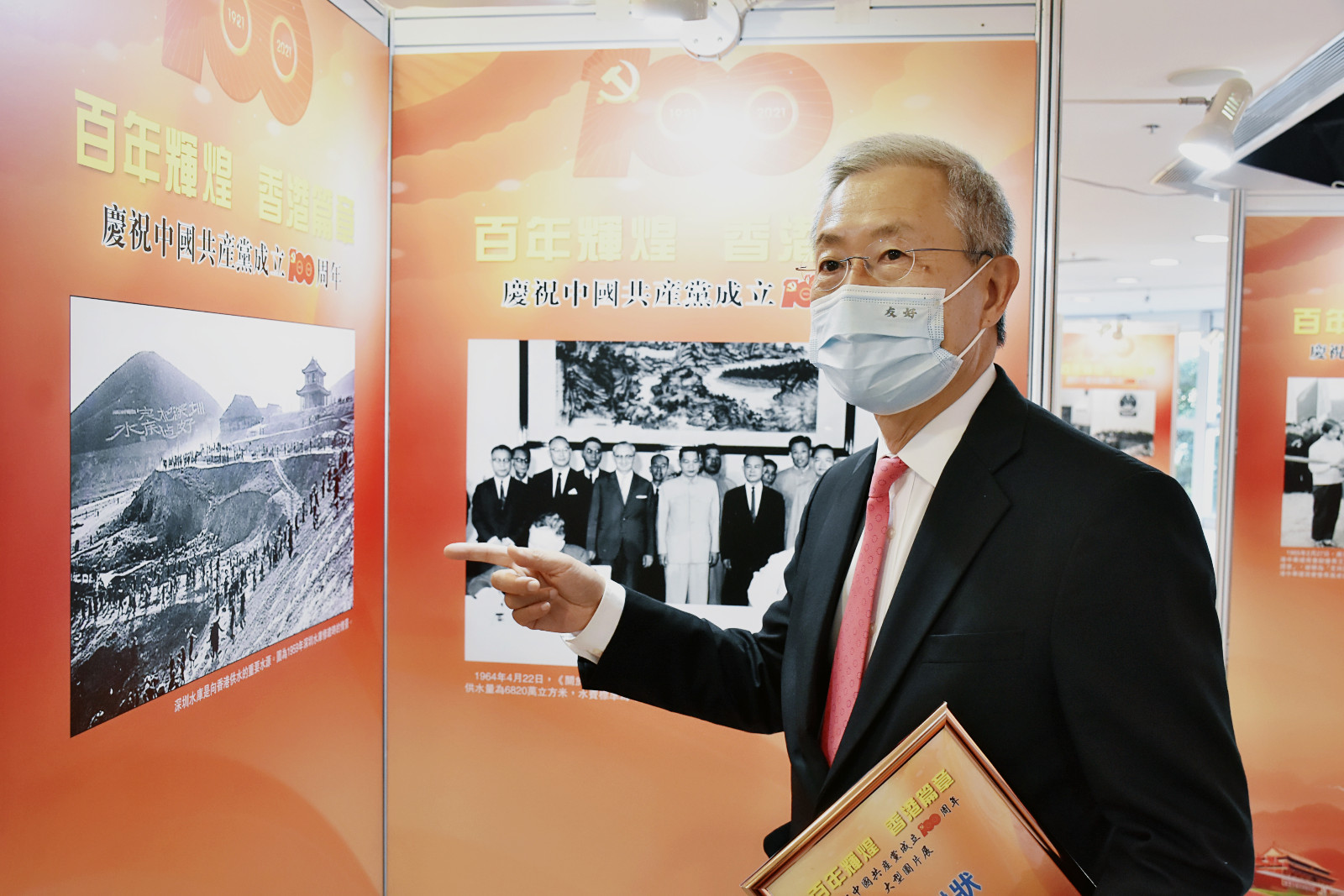 由香港商報主辦的「百年輝煌 香港篇章」大型圖片展12日下午在九龍塘創新中心啟幕。圖片展重溫中國人民從站起來、富起來到強起來的世紀征程,再現香港在國家百年奮鬥歷程的精彩篇章。這是本港首次呈現香港與中共百年壯麗史詩關係的大型圖片展。