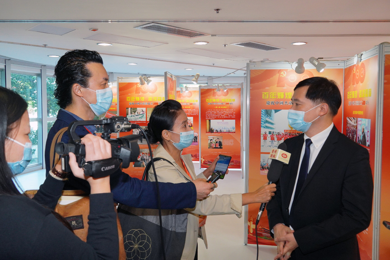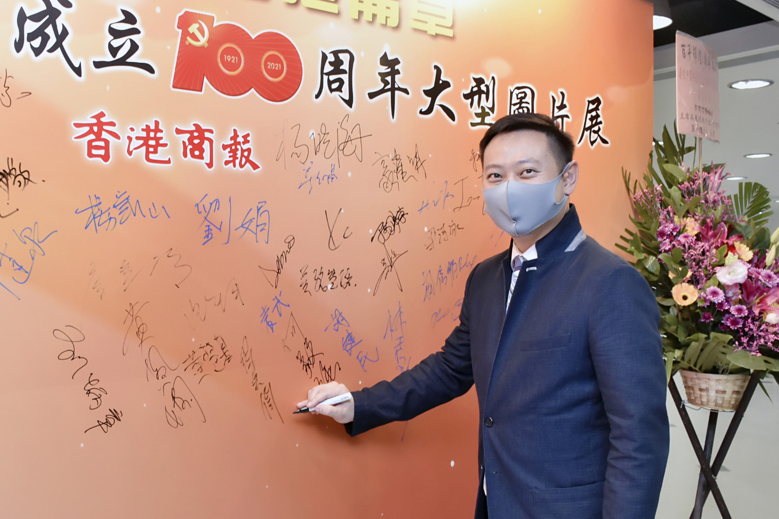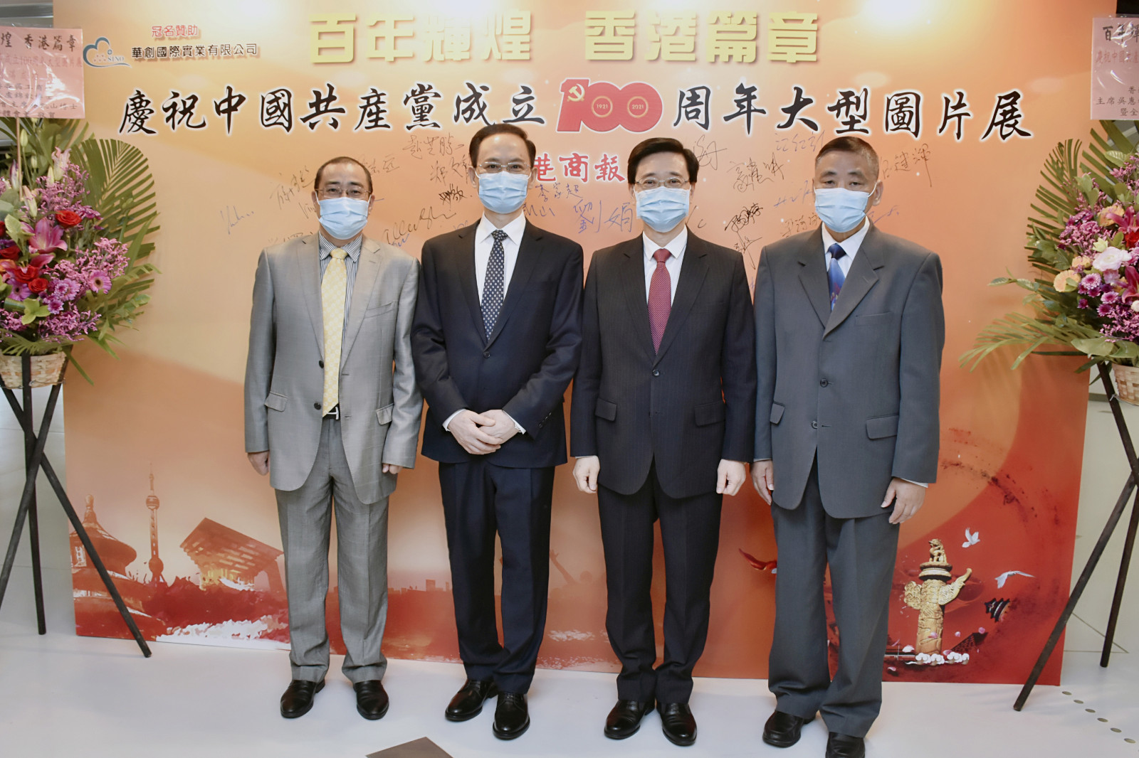 由香港商報主辦的「百年輝煌 香港篇章」大型圖片展12日下午在九龍塘創新中心啟幕。圖片展重溫中國人民從站起來、富起來到強起來的世紀征程,再現香港在國家百年奮鬥歷程的精彩篇章。這是本港首次呈現香港與中共百年壯麗史詩關係的大型圖片展。