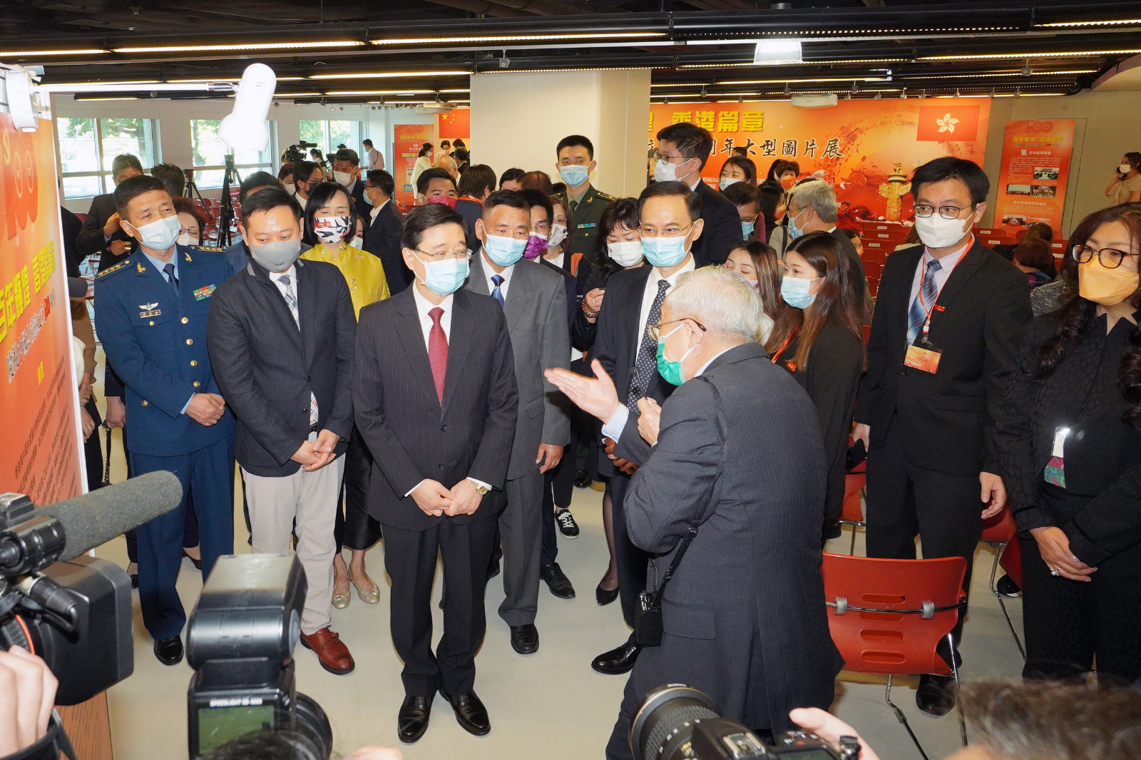 特區政府政務司司長李家超在圖片展致辭,並與民政事務局局長徐英偉、政制及內地事務局副局長胡健民,外交部駐港公署新聞及公關部副主任朱亞麗、駐港部隊副參謀長楊曉海,中華總商會會長袁武、專業聯盟主席劉炳章、僑界社團聯會會長黃楚基、中華廠商聯合會會長史立德、中華出入口商會副會長溫幸平、廣東社團總會常務副主席何毅強、華創國際實業有限公司董事長劉達泉、香港史專家劉蜀永教授等擔任主禮嘉賓。本次展覽將免費展出3天,至11月14日下午結束。