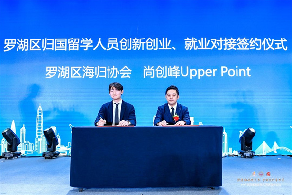 在同步舉行的羅湖區歸國留學人員創新創業、就業對接簽約儀式上,羅湖區海歸協會、國宏嘉信基金分別與尚創峰Upper Point、蜜蜂科技BEEPLUS、創富港眾創空間合作,開展資源對接與整合,推動「歸·家」深圳市歸國留學人員服務計劃邁上新台階。