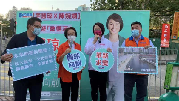 工聯會陳婉嫻過去一直提倡發展與保育並存的概念,與民建聯建議的政策方向一致。今天(13日)工聯會嫻姐和民建聯主席李慧琼(立法會選舉九龍中選區候選人)共同出席「暢遊啟德河」活動,同場亦有民建聯成員及工聯會社區幹事到場為李慧琼打氣。、