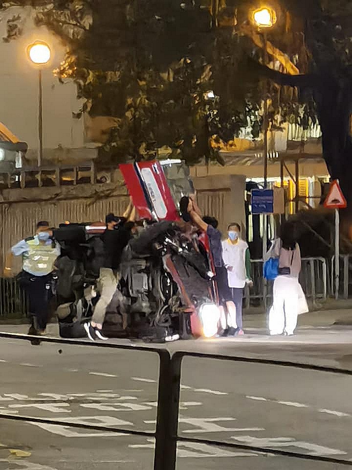 警方和救護員接報到場,替年約60歲司機急救,他頸和胸部受傷,送往瑪嘉烈醫院治理,警方正調查意外原因。(記者 區天海)