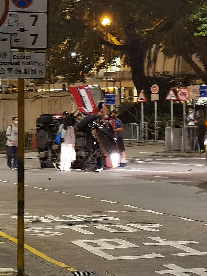 事發於今日凌晨1時許,一輛沒有載客的的士行經石圍角邨近石菊樓對開時,突然失控撞向路旁行人路上欄桿,全車向左翻側,橫亙路中,司機被困車箱內無法爬出。當時有多名途人行經上址,見狀馬上上前打開車門,以及扶穩車身,將司機救出和報警。