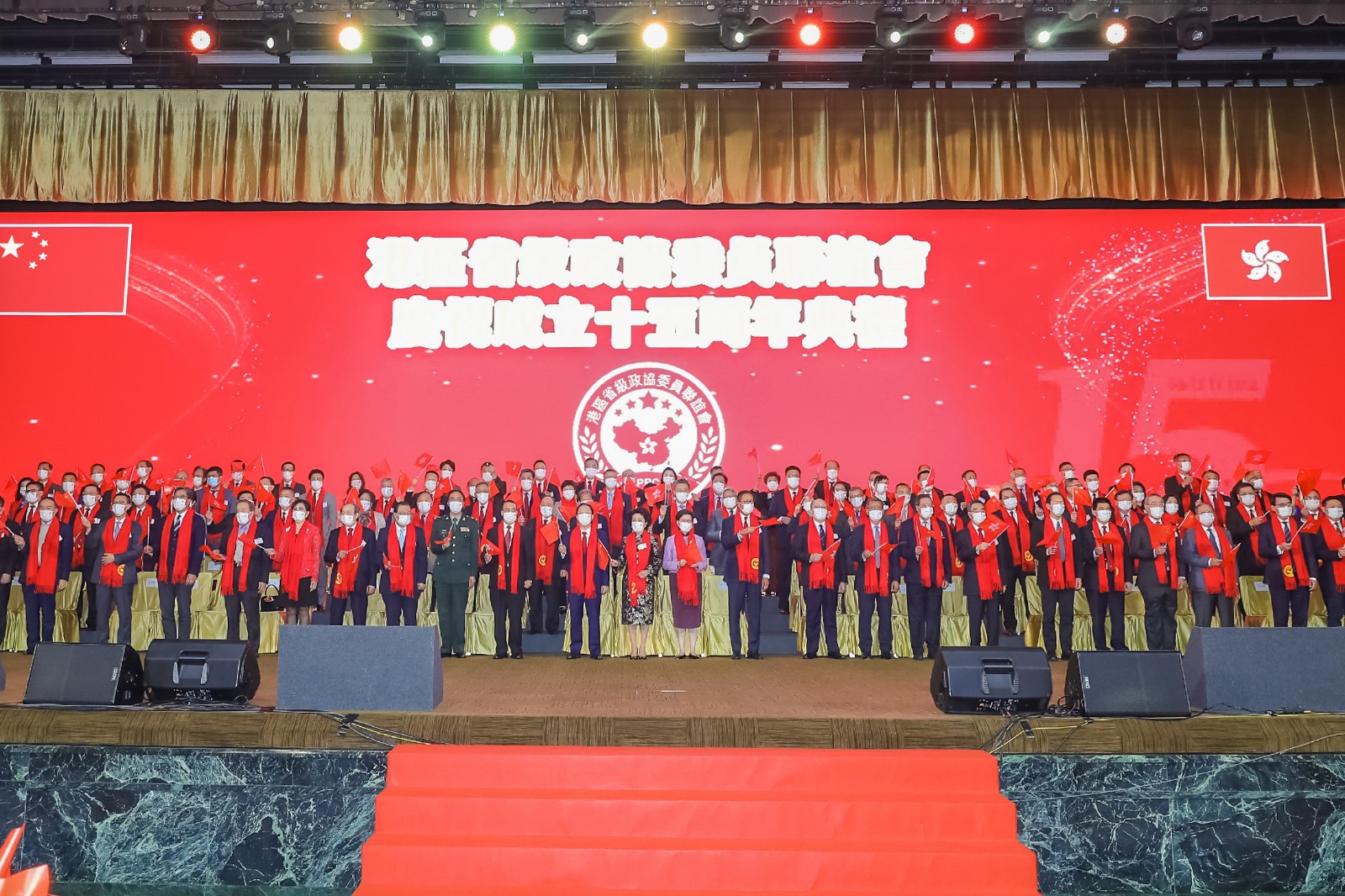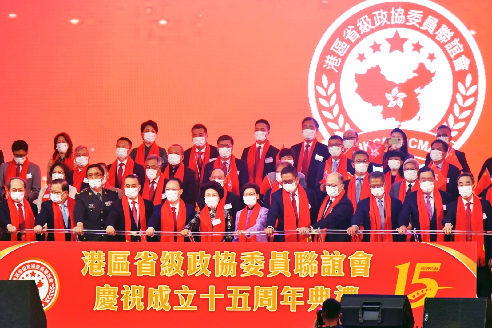 港區省級政協委員聯誼會22日假香港會議展覽中心舉行「港區省級政協委員聯誼會慶祝成立十五周年典禮」,行政長官林鄭月娥、中聯辦副主任譚鐵牛、國安公署署長鄭雁雄、外交部駐港公署特派員劉光源、駐香港部隊副司令員鄭國躍、財政司司長陳茂波等蒞臨主禮。聯誼會一眾首長與港區全國人大代表、全國政協委員、香港立法會議員、特區政府官員,以及本港各界嘉賓共賀會慶,祝願國家強盛香港繁榮。(記者 呂明霞 攝影 馮瀚文)