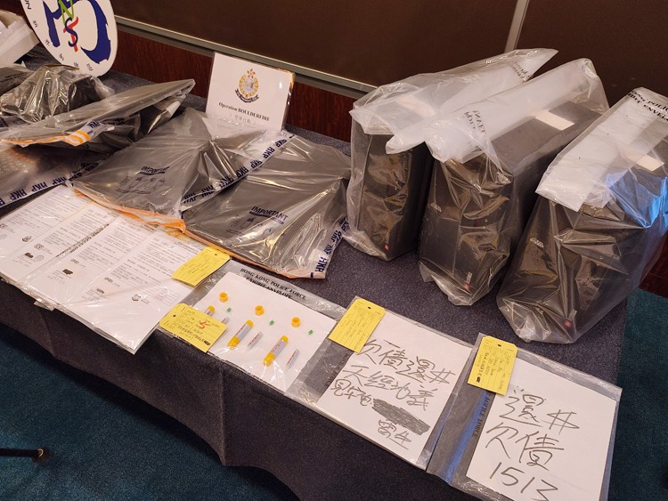 圖說:警方在行動中檢獲的大批證物。