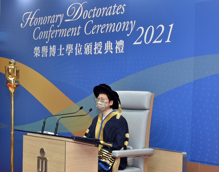 香港特別行政區行政長官暨大學校監林鄭月娥主持科大的榮譽博士學位頒授典禮。