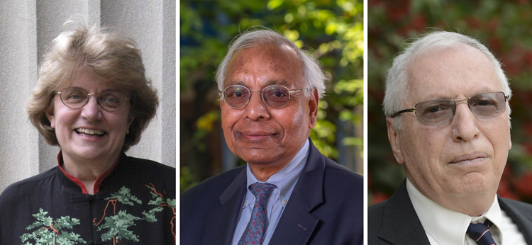 圖為以視像形式出席頒授典禮的榮譽博士得獎者Nancy Hopkins、Anil Kumar Jain和Daniel Weihs。