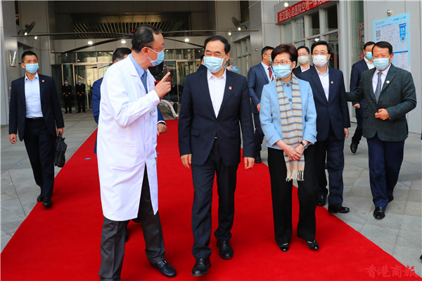 行政長官林鄭月娥昨晚(28日)抵達湖北武漢,今日(29日)起至周三在當地進行訪問行程。她早上先拜訪港資的武漢亞心總醫院,期間參觀醫院設備以及與醫護人員會面,之後將到訪一間智能車企業參觀。林鄭月娥下午將拜會湖北省領導,之後緊接出席鄂港合作會議第一次會議,期間將發表講話及簽署備忘錄。隨行的特區官員,包括政務司司長李家超、創新及科技局局長薛永恒、民政事務局局長徐英偉和政制及內地事務局副局長胡健民。(記者:李映華 攝影:陳勇)